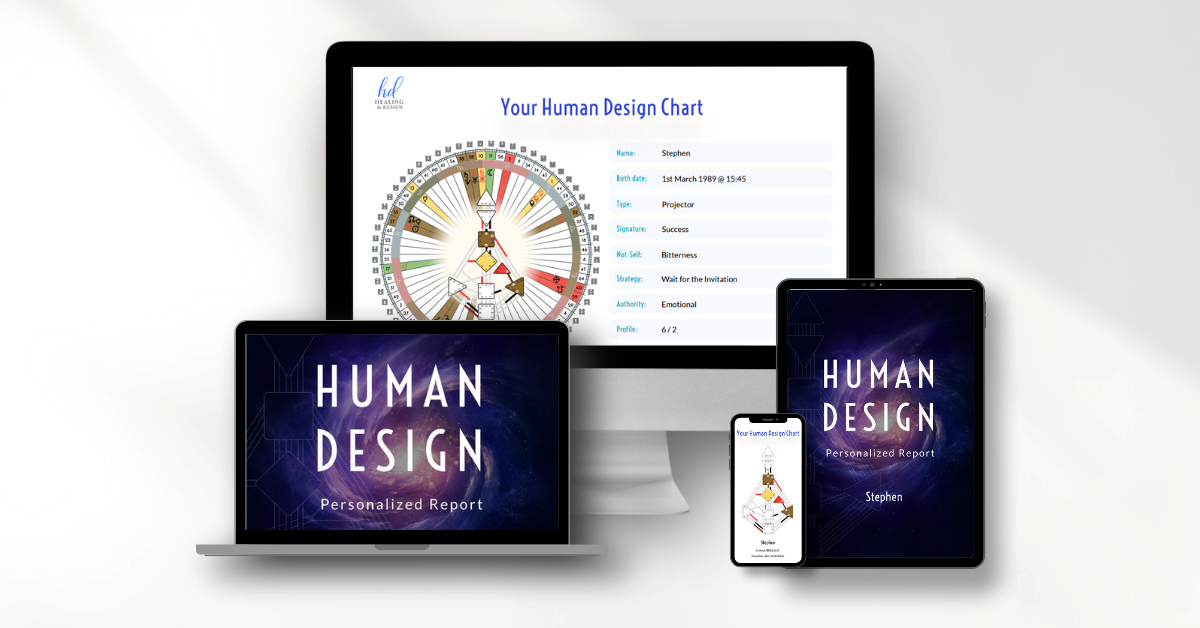 Get a quick 1-page PDF overview of your Human Design: Type, Signature, Strategy, Authority, Profile, Definition, and Incarnation Cross.